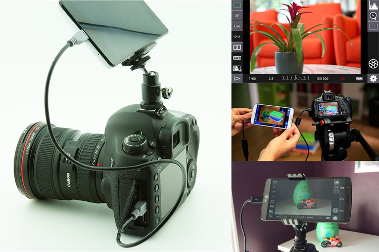 Hiermee kunt u op afstand de controle van uw Canon of Nikon DSLR camera van je telefoon of tablet met een USB-OTG-kabel, aan te passen sluitertijd, diafragma, ISO, en nog veel meer. U kunt zelfs zeer kleine micro scherpstelling voor kritische werk! Ook fungeert als een remote trigger (ontspanknop.)