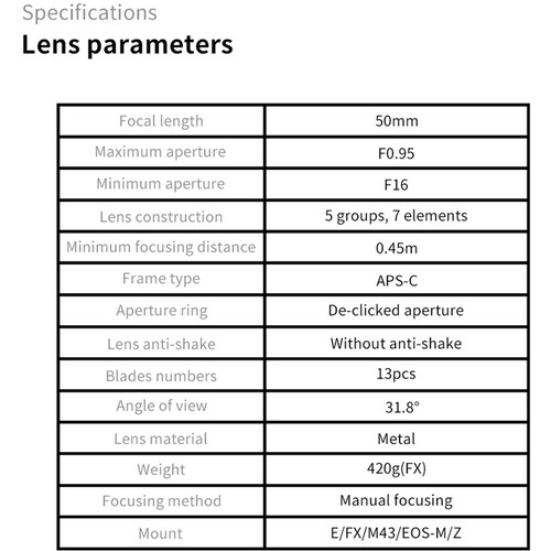 • 7artisans 50mm F/0.95 lens