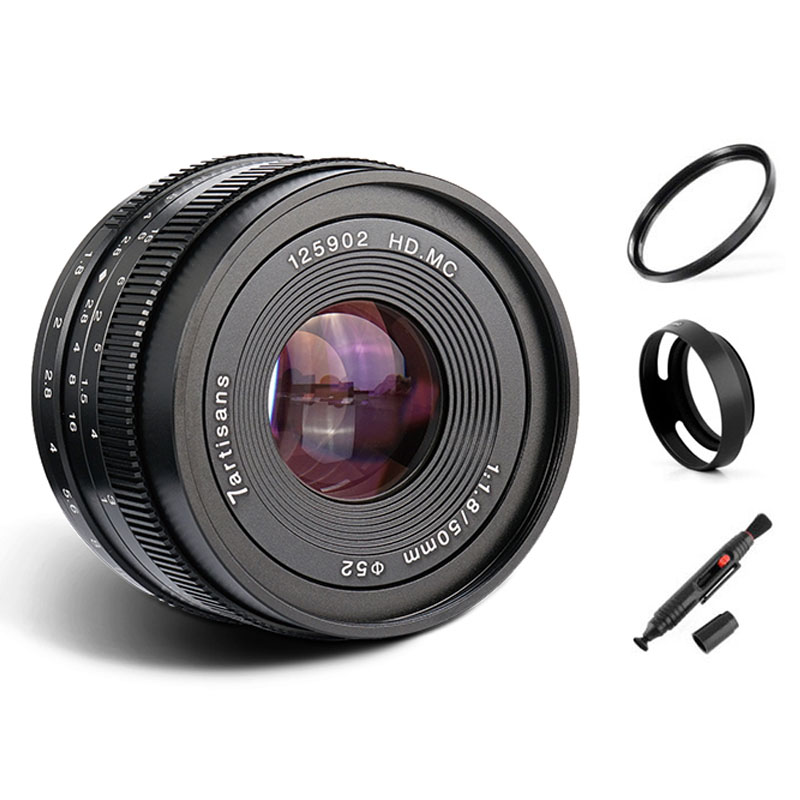 7artisans 50mm F1.8 manual focus lens Olympus en Panasonic systeem camera + Gratis lenspen + 52mm uv filter en zonnekap