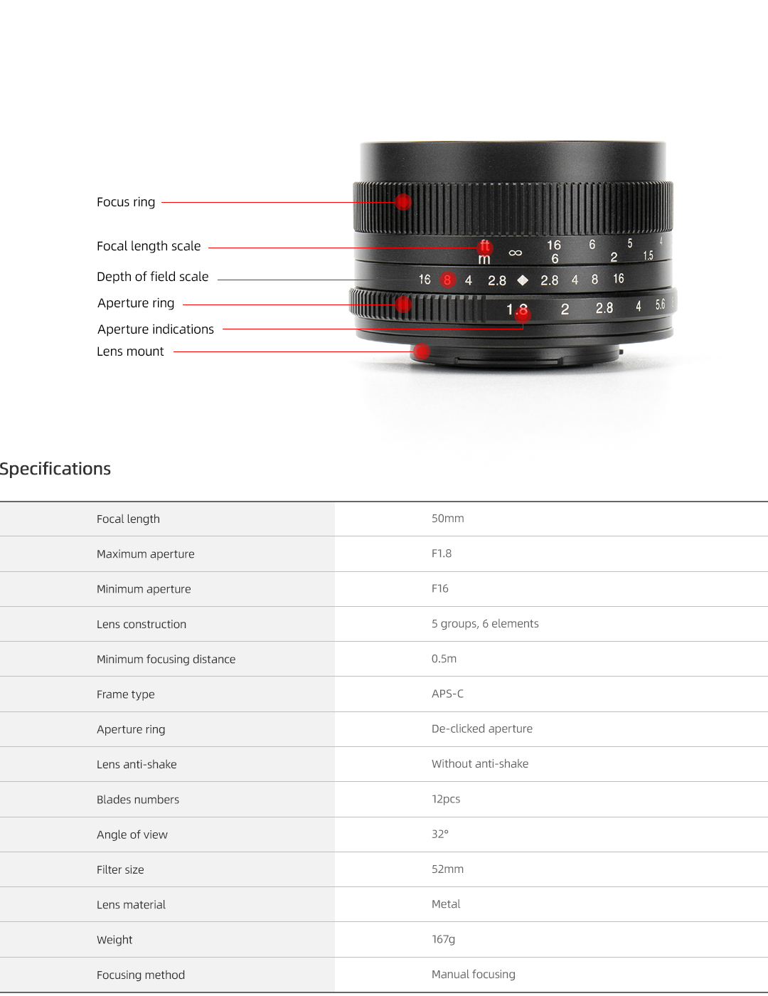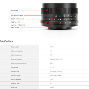 7artisans 50mm/f1.8 is gemaakt voor Olympus en Panasonic M4/3 mount camera’s. Gemaakt van uitstekende kwaliteit lens, het beschikt over lage chromatische aberratie. De veertien bladen bieden hoge kwaliteit van de overgang evenals mooie bokeh voor de lens, houden de achtergrond wazig uit onderwerp.