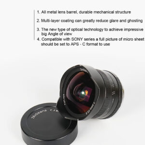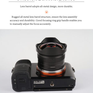 De 7artisans 7.5mm F2.8 is een ultragroothoek fisheye-lens met volledige handmatige bediening. Het optische systeem bestaat uit 11 elementen in 10 groepen. Het is ontworpen voor camera’s met APS-C-sensorformaat. Met een beeldhoek van 180 produceert deze lens een dramatisch gebogen perspectief dat rechte lijnen buigt en de afstand tussen onderwerpen overdrijft. Het stelt iemand in staat om het geheel van een enorm onderwerp zoals een gebouw of de oceaan vast te leggen, waardoor nieuwe mogelijkheden en verrassende resultaten worden geopend. Deze lens kan ook worden gebruikt voor meeslepende panorama-opnamen op volledig scherm en voor het verzamelen van VR-materiaal.