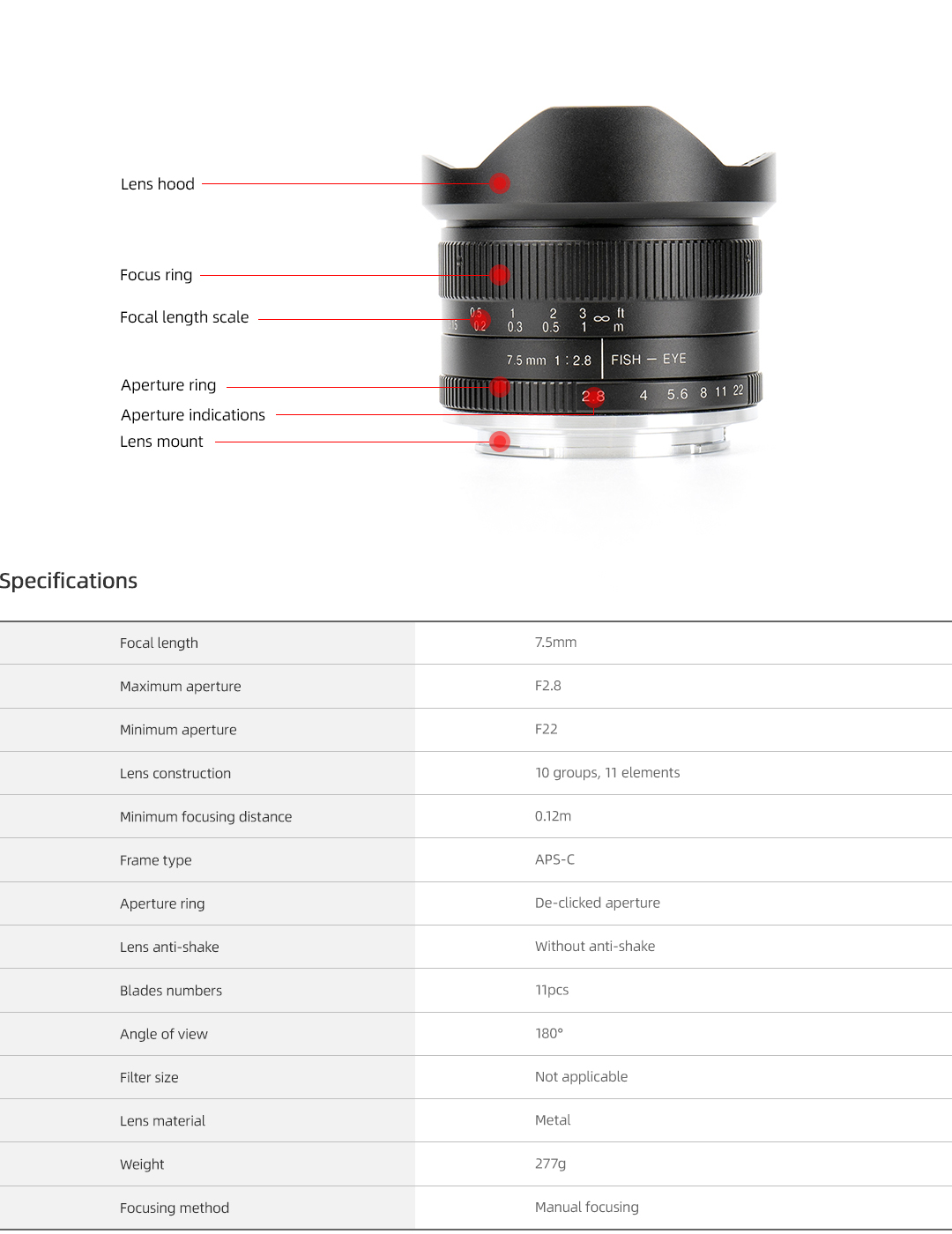 7artisans 7.5 mm F2.8 lens