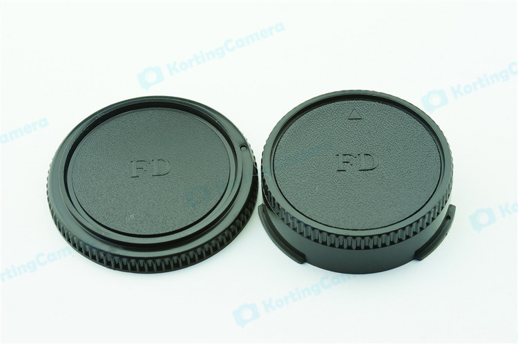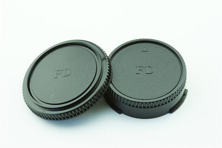 een lens achterdop + een camera bodydop (2 stuk) voor alle objectieven en camera met een Canon FD mount