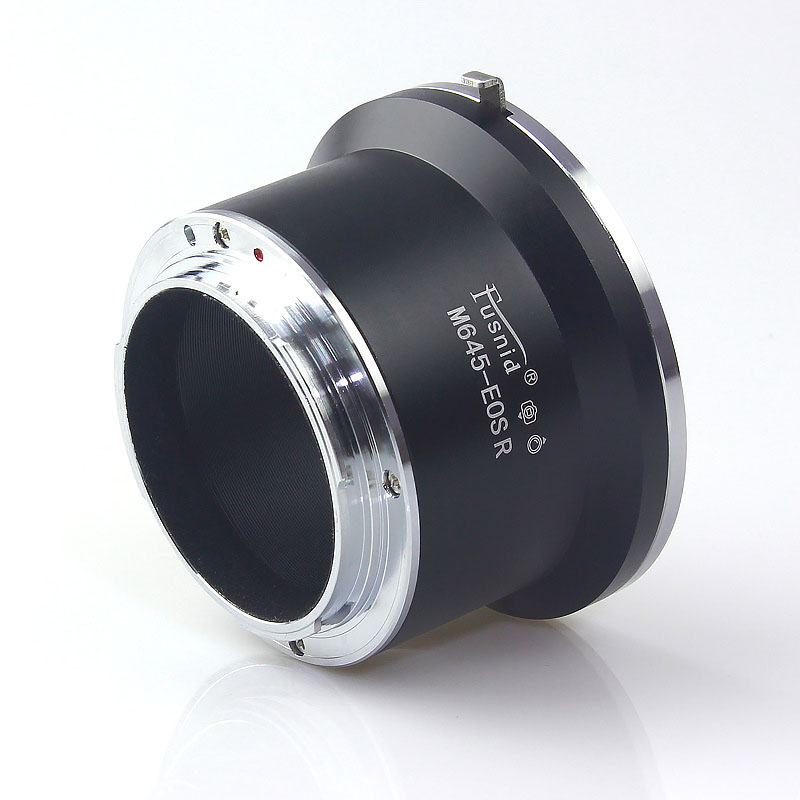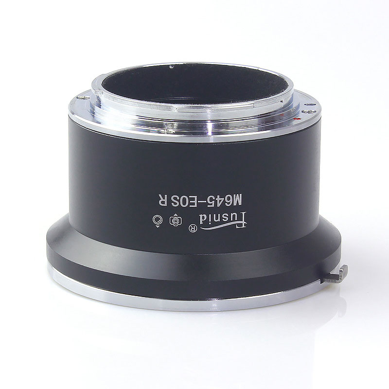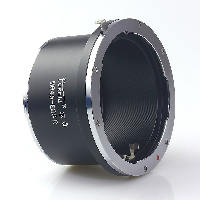 Met deze adapter kunt u een Mamiya 645 mount lens gebruiken op een Canon EOS.R mount camera