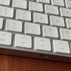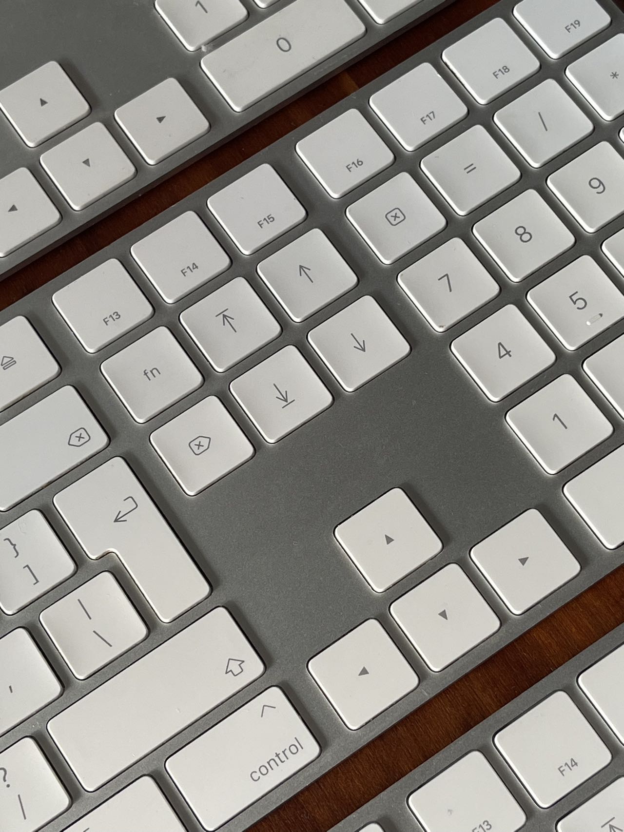 Het Magic Keyboard met numeriek toetsenblok heeft een uitgebreide indeling met navigatieregelaars om snel door documenten te scrollen, en pijltoetsen van normale grootte. Op het Magic Keyboard typ je heel prettig en nauwkeurig. Bovendien is het draadloos en heeft het een oplaadbare batterij.