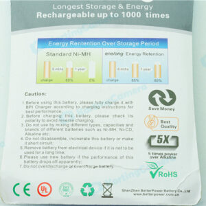 Een belangrijk voordeel van deze batterijen is dat ze minder snel leeg lopen. Na 1 jaar bevat deze batterij nog tot 80% van de energie, terwijl een standaard oplaadbare batterij dan opnieuw opgeladen moet worden.