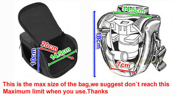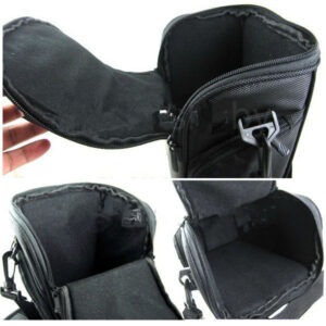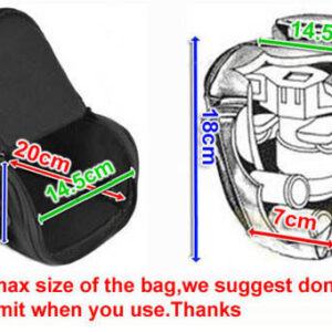 De camera tas is gemaakt van nylon en is geschikt voor een DSLR (Digital Single Lens Reflex camera) of een digitale spiegelreflexcamera. Bescherm je foto camera tegen vuil en regen met deze handige opbergtas. De fototas heeft een verstelbare schouderband en een lus waarmee je de tas aan je broekriem kunt vastmaken, als je dat handig vindt. De binnenkant van de beschermtas is gewatteerd en voelt zacht aan. Het schuim in de tas werkt schok dempend. Een goede bescherming voor de buitenkant van je fotocamera. De tas is in ieder geval geschikt voor Nikon en Canon modellen, maar ook voor andere digitale spiegelreflex of DSLR camera’s. De camera tas beschermt je camera tegen stof en tegen krassen.. Meet je camera op voordat je deze fototas bestelt. Dan weet je zeker of je camera in de beschermtas past.