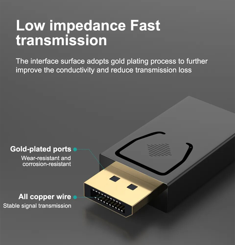 (10) Strikt ontworpen overeenkomstig de DisplayPort-norm, De haven keurt een slotontwerp goed, en de signaaltransmissie is stabiel en betrouwbaar