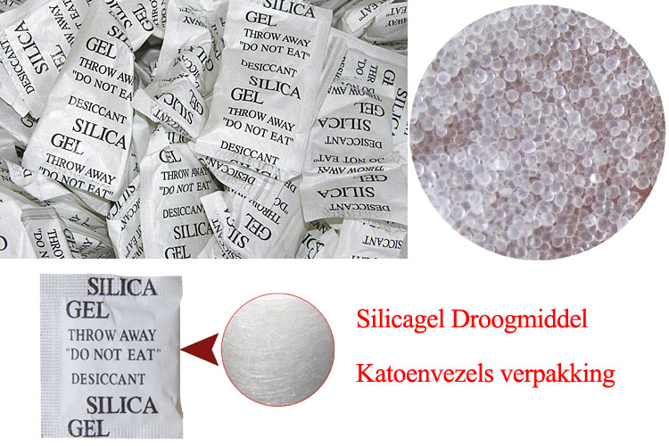 Het hygroscopische droogmiddel op basis van silicagel neemt vocht op. Deze zakjes worden onder andere gebruikt bij het verzenden van elektronica, componenten en goederen en om componenten te beschermen tegen een te hoge luchtvochtigheid. De zakjes kunnen, afhankelijk van de intensiteit van het gebruik tot 10 maal worden geregenereerd door inwerking van warmte (± 10 min bij 100 – 120 °C bijv. in een hete-lucht oven).