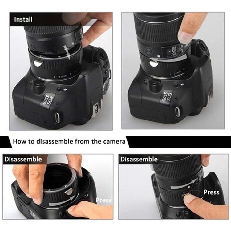 Mount Lens Adapter Auto Focus Af Macro Extension Tube Ring Voor Canon Eos EF-S Lens en camera 1dxii, 5ds, 5d4, 7d2, 80d, 90d, 760d, 77d, 750d, 800d, 200d, 250d, 2000d, 4000d, en meer.