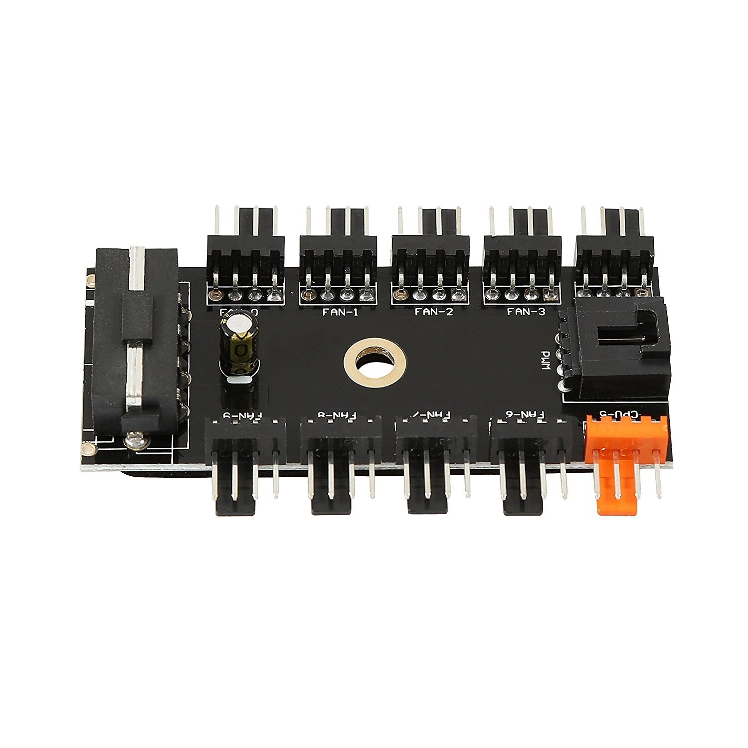 Elke fans aangesloten op de andere 9 ZWART poorten KAN NIET worden aangepast in snelheid. Ze gewoon kopiëren de snelheid die wordt geregeld door de CPU fan.