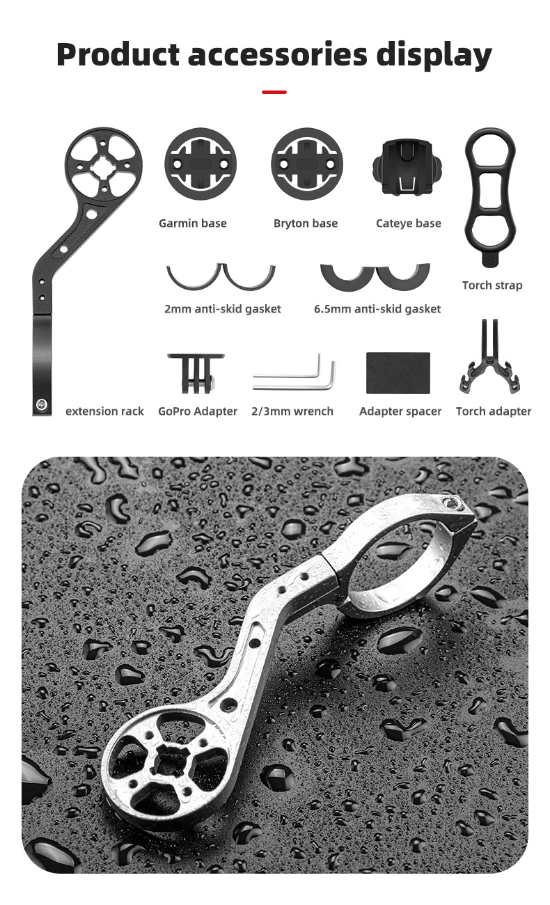 Professioneel 7 in 1 Zwart Fiets Computer Mount Houder Koplamp Klem Fiets Stuur Extension Bracket Adapter voor GARMIN Edge GPS voor Gopro hero voor mobile phone voor fietslicht