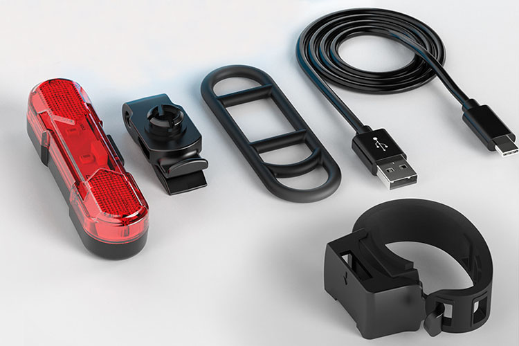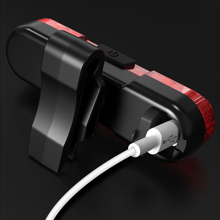 USB oplaadbare fiets achterlicht en auto afgesneden wanneer volledig opgeladen.