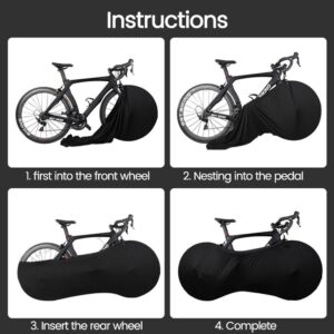 Deze fiets cover beschermt het interieur vloeren en muren van vuil (appartementen, huizen, kantoren, auto’s), en de mooie bike cover kan wrap fietsenrekken en banden. De rand van de cover is ontworpen met een hoge-elastische elastische band om uitglijden te voorkomen. Eenvoudig ontwerp, all-round zwart kan willekeurig worden afgestemd met fietsen om meer mooie en royale.