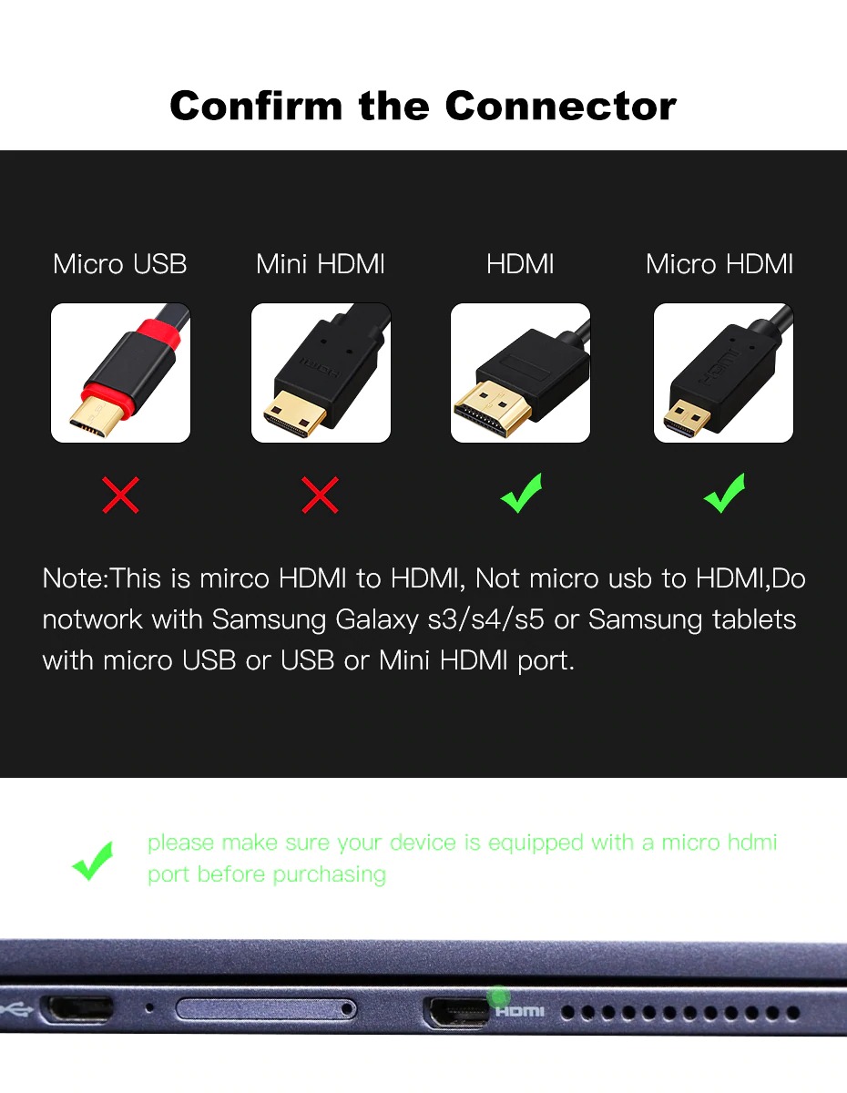 Voor de aankoop, zorg ervoor dat uw apparaat is uitgerust met een micro hdmi-poort.