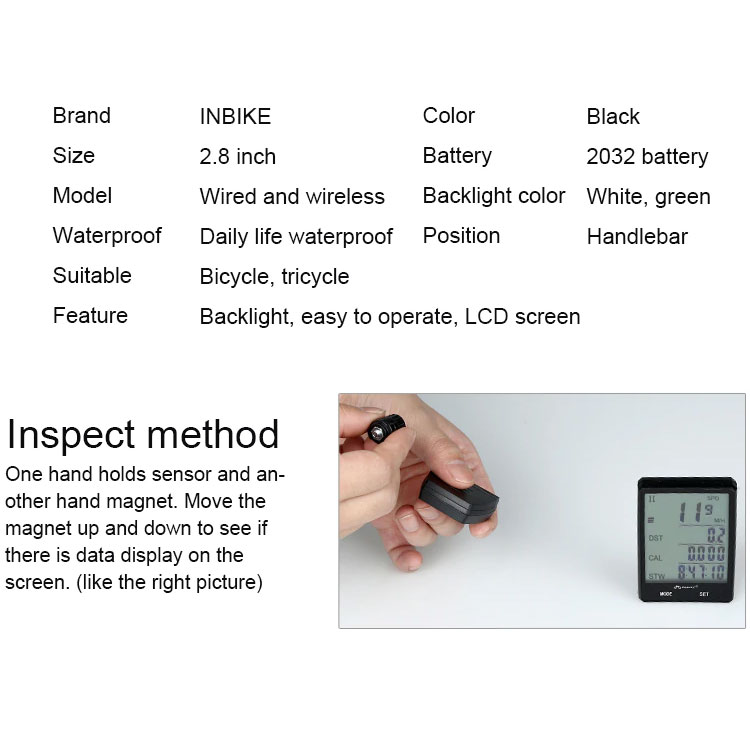 INBIKE 2.8 inch Fiets Draadloze Computer Regendicht Multifunctionele Riding Fiets Kilometerstand Fietsen Snelheidsmeter Stopwatch Backlight met verlengstuk