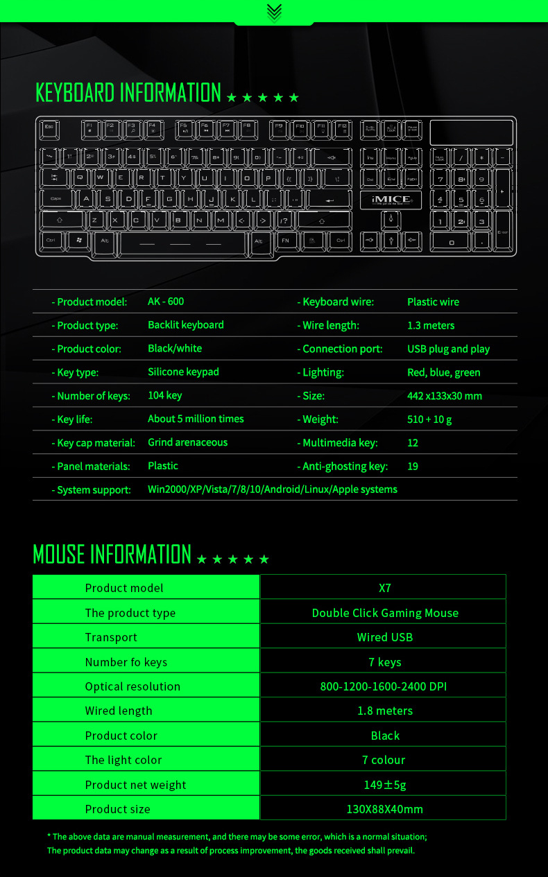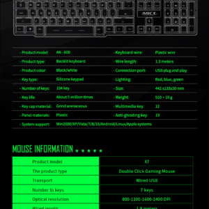 Item Naam: Bedrade Gaming Toetsenbord En X7 Gaming Muis