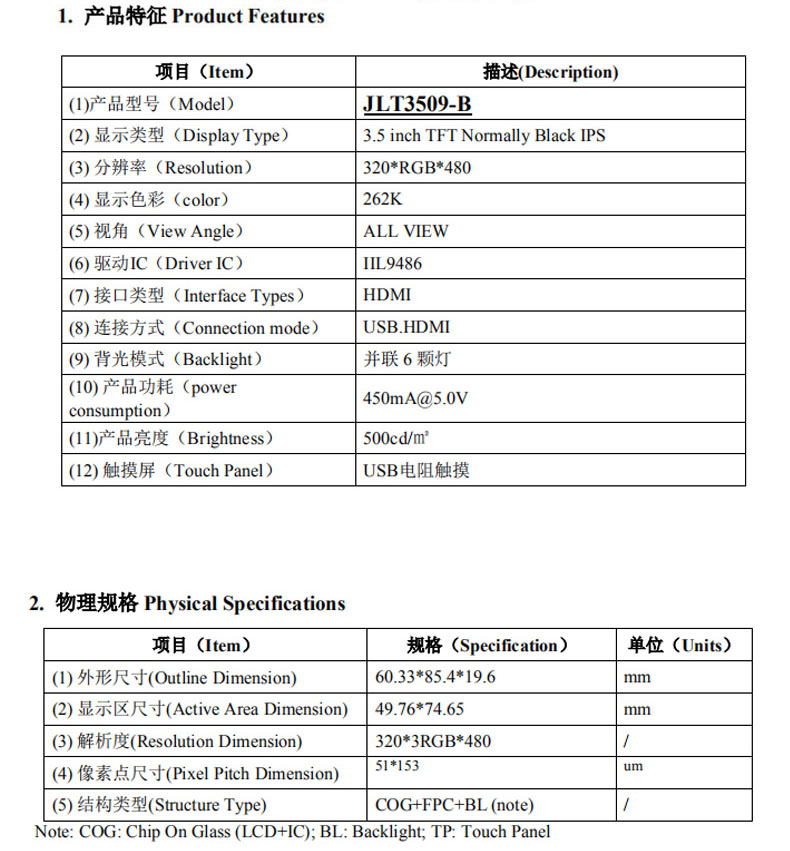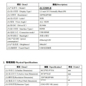 3.5inch standaard display, 480X320 Hardware resolutie