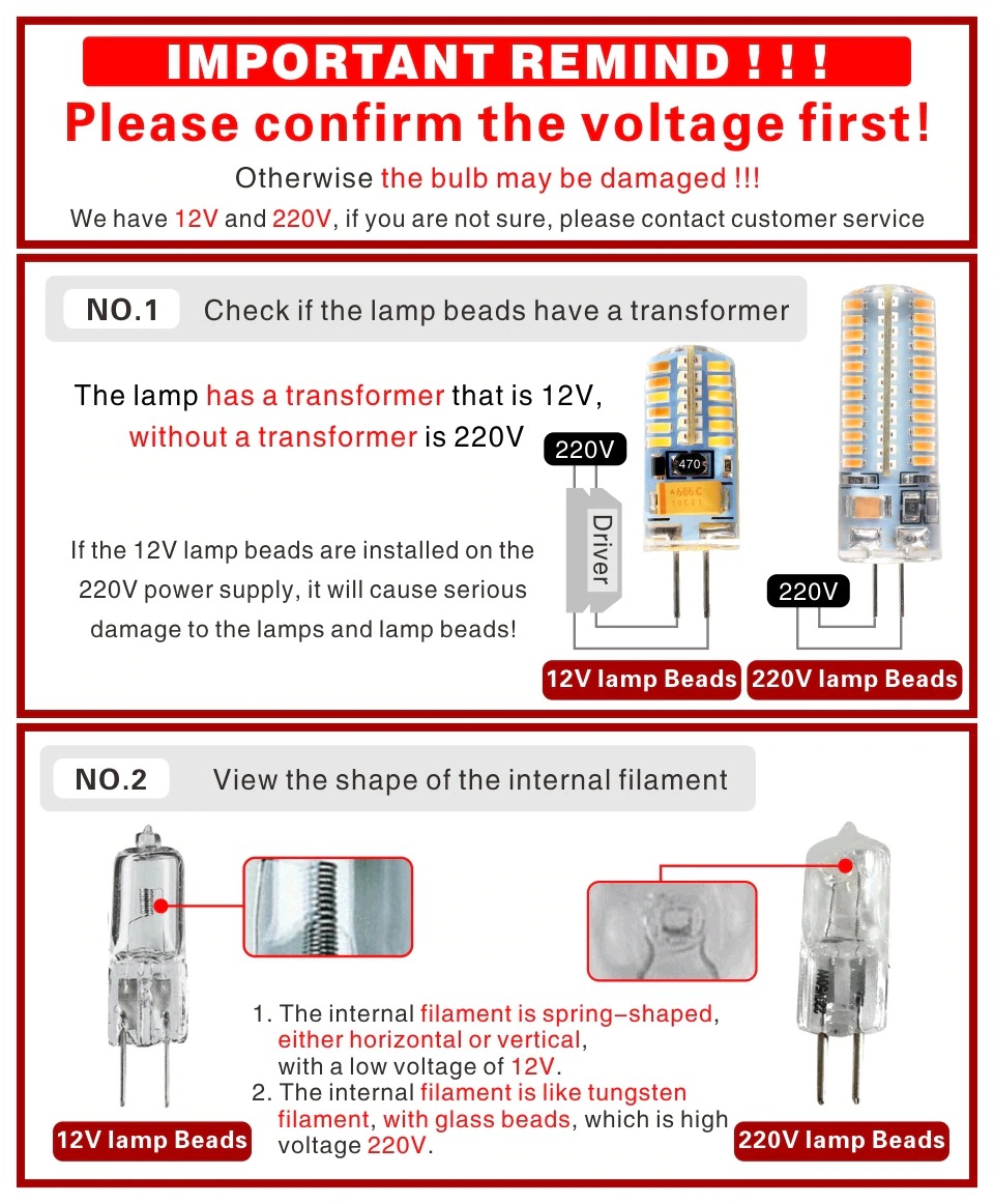 A1. Controleer uw oude G4-lamp zorgvuldig, is deze 12V of 220V? In de meeste landen is G4 12V en G9 220V