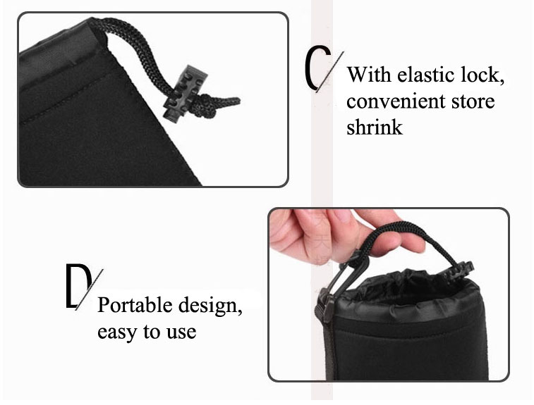 diameter 10cm, hoogte 14cm, dikte 0.3cm. Voor lens met diameter minder dan 10cm, hoogte minder dan 12cm