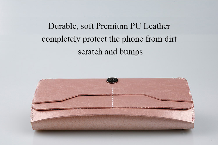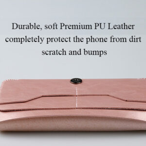 De cover van dit luxe telefoon tasje is vervaardigd van PU-leer voor een langdurige bescherming. Het materiaal heeft de eigenschappen van echt en zacht leder, tevens zorgt het voor optimale grip. De binnenzijde is voorzien van een zachte voering van stof om krassen aan uw mobile phone te voorkomen. De telefoon kan eenvoudig in het hiervoor bestemde vakje worden geschoven. De afmetingen kunt u onderaan deze tekst vinden.