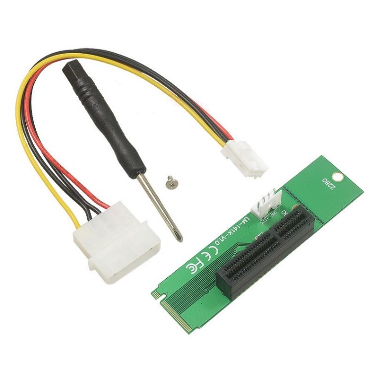 Met deze adapter verander je het m.2 slot van je moederbord in een pcie slot, zodat je meer pcie riser in het moederbord kunt steken.