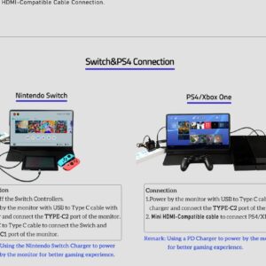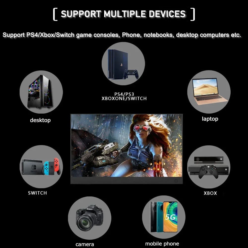 Brede Compatibiliteit:  Deze externe monitor USB draagbare monitor verbindt eenvoudig de laptop, pc, MAC, tablet, smartphones, XBOX, PS3 /PS4 /PS5, schakelaars, enz. via Type-c of Mini HDMI-poort
