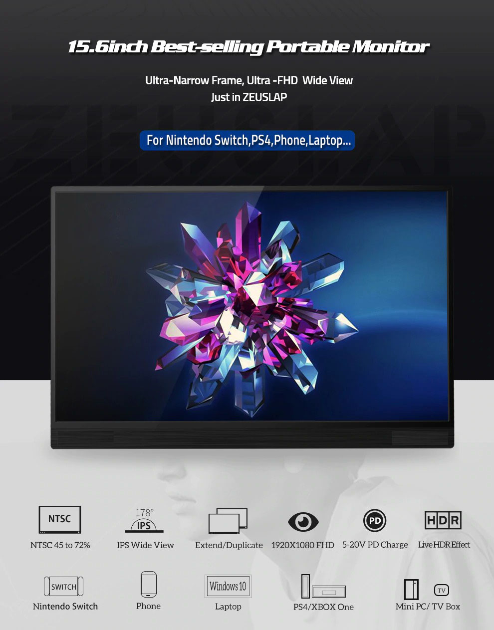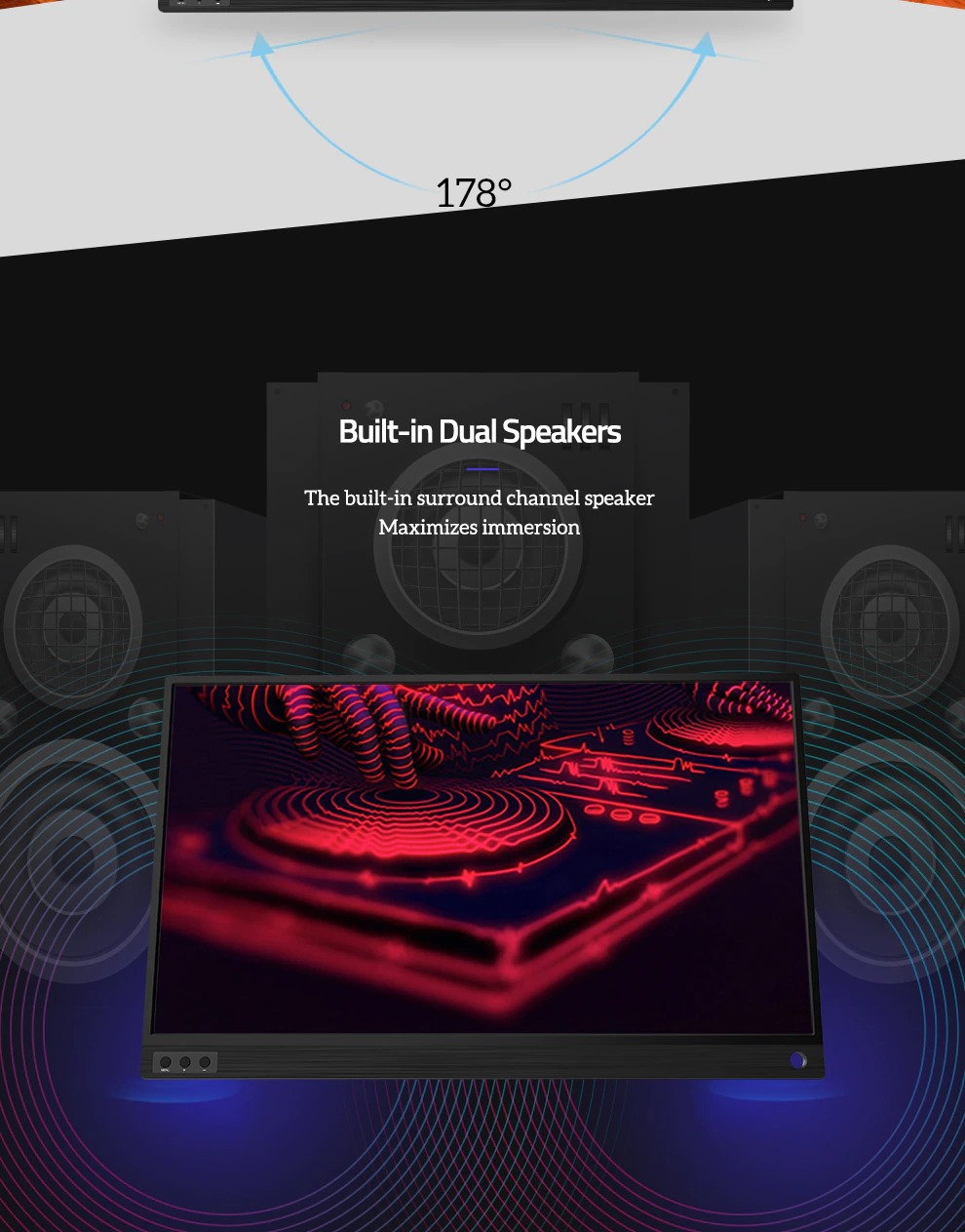 Slim, Lightweight & Portable: De draagbare monitor is gemaakt van een 15,6-inch geavanceerd IPS-scherm met een resolutie van 1920*1080, levert met een kijkhoek van 178 °, een beeldverhouding van 16: 9. HDR-renderingstechnologie herstelt het echte beeld