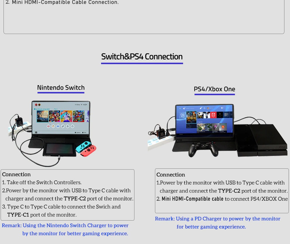 Q: 4. hoe te verbinden deze draagbare monitor met mijn PS4/PS5/Xbox One/TV box/Mini PC?