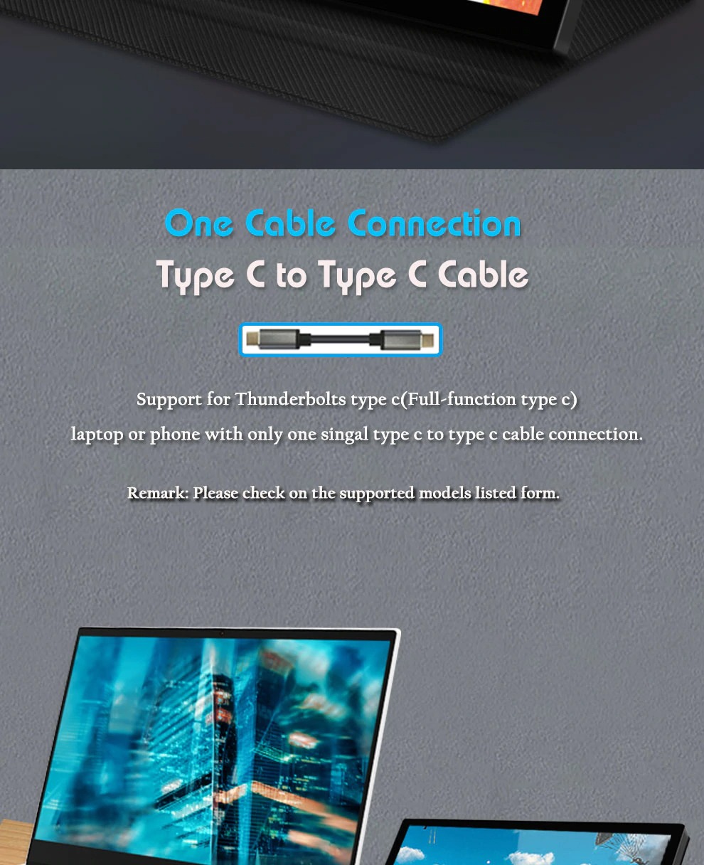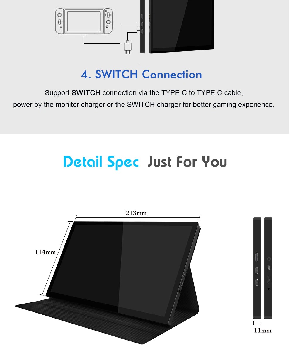 Eerste: opstijgen de schakelaar controller; Tweede: sluit de monitor type C PD poort opladen met SCHAKELAAR oplader; Eindelijk: gebruik het type c naar type c kabel om de schakelaar en de monitor type C data poort.