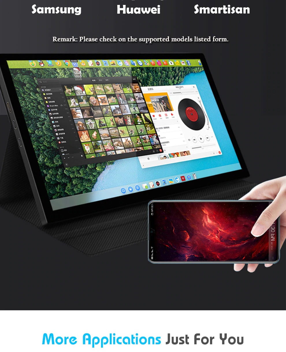 A: Al deze apparaten zijn aangesloten met monitor via HDMI-compatibel verbinding. Eerste: power door de monitor met de lader inbegrepen (sluit de type c pd poort); tweede, Mini HDMI-compatibel HDMI-compatibele kabel om het apparaat en monitor.