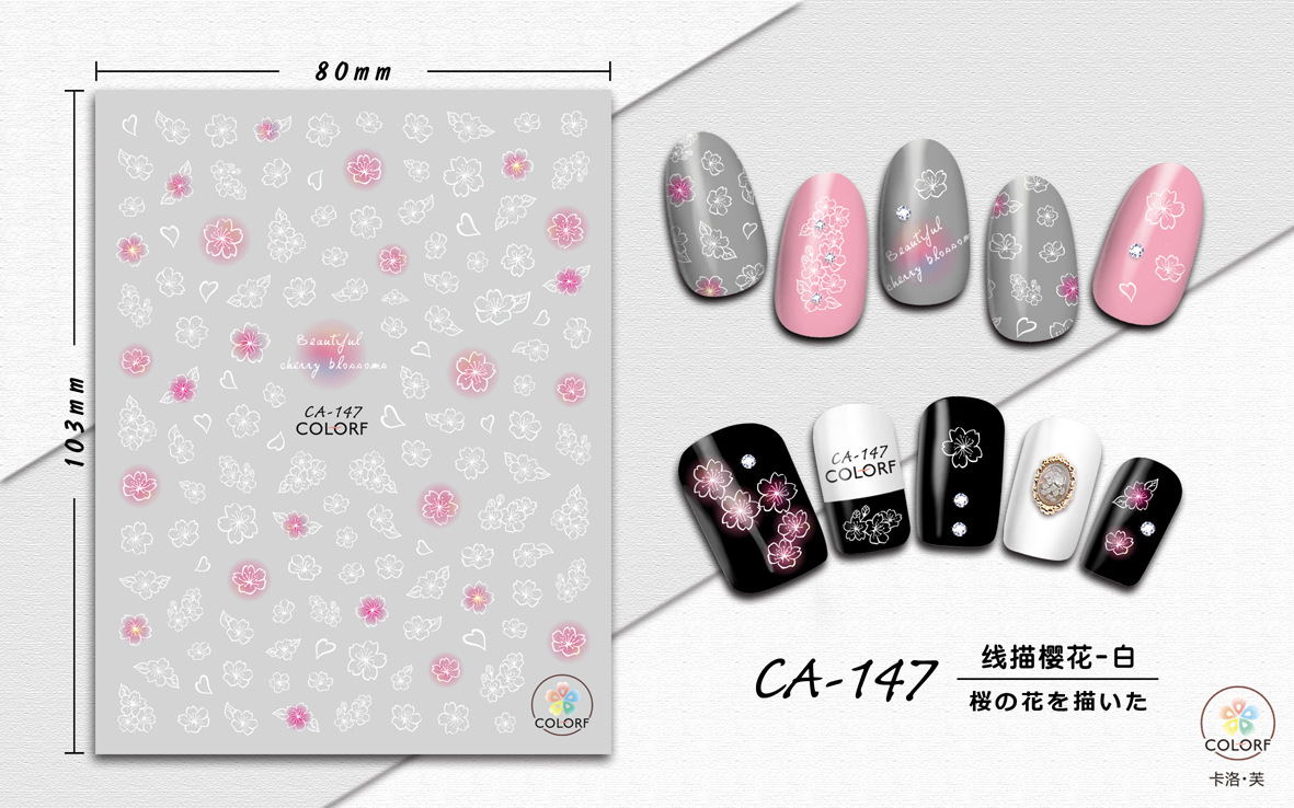 3D Nagel Sticker Coole stickers voor nagel folie Fashion Manicure Stickers Nagels CA-147 Kersebloesem Wit