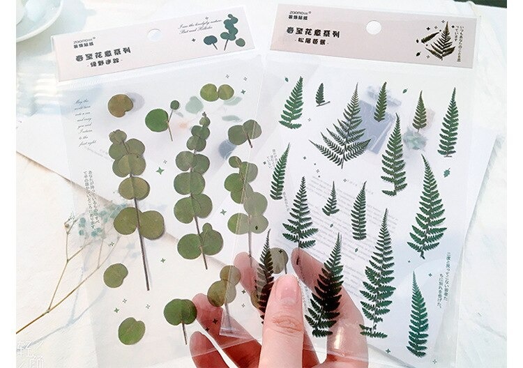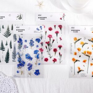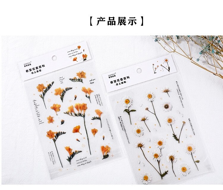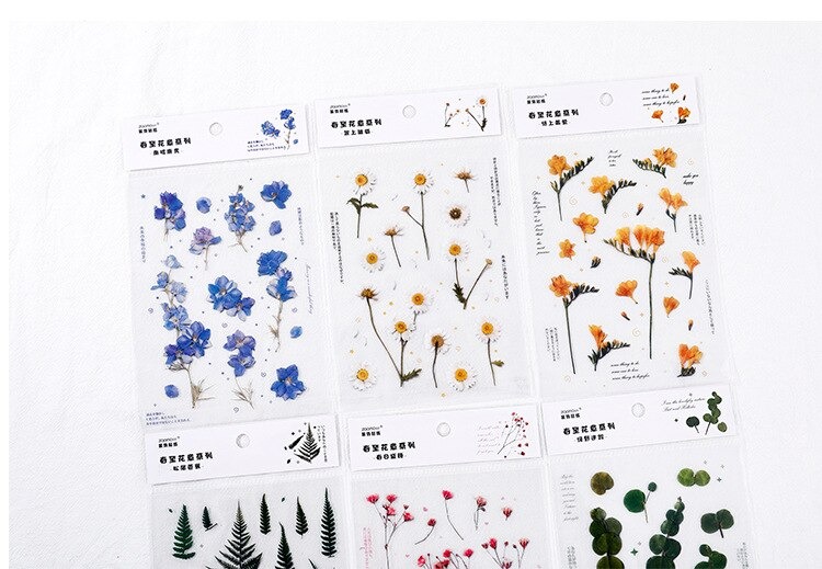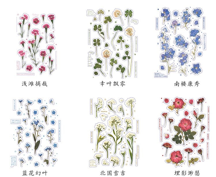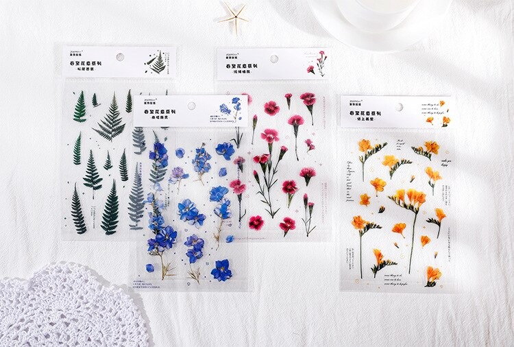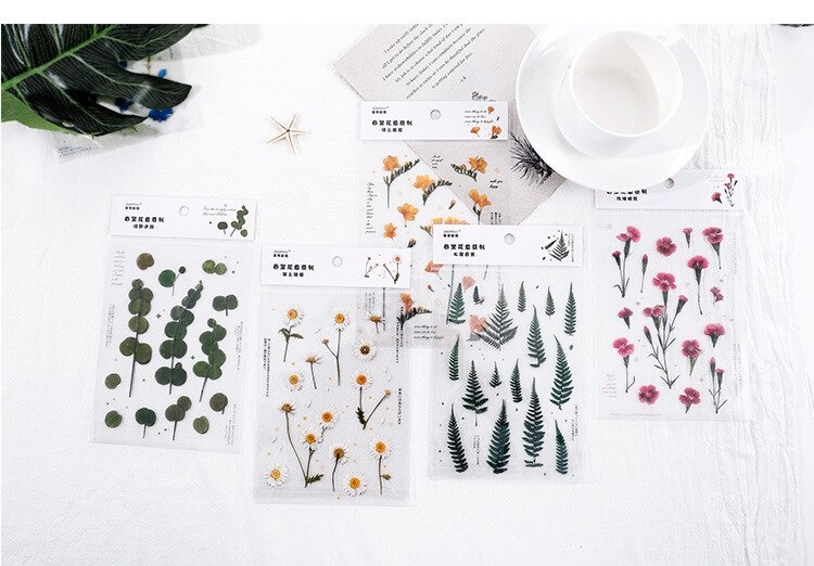 18 stuk Ontwerpen Natuurlijke Daisy Clover Japanse Woorden Stickers Transparante Pet Materiaal Bloemen Bladeren Planten Deco Stickers
