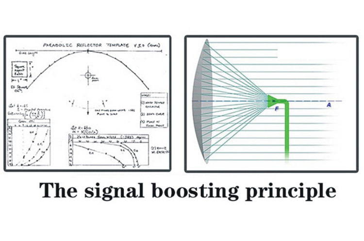 parabolische reflector van metaal meestal een metalen frame bedekt met draad mesh binnen. Metal mesh breedte van de groef moet minder dan 10. De metalen coating is gevormd om als spiegel reflector radar energie.