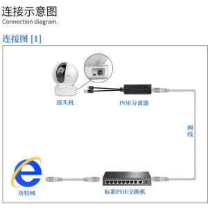 1. 48V standaard POE-splitter, gebruikt met een POE-schakelaar, kan gemakkelijk de signaaloverdracht en voeding van gewone IP-camera’s aan.