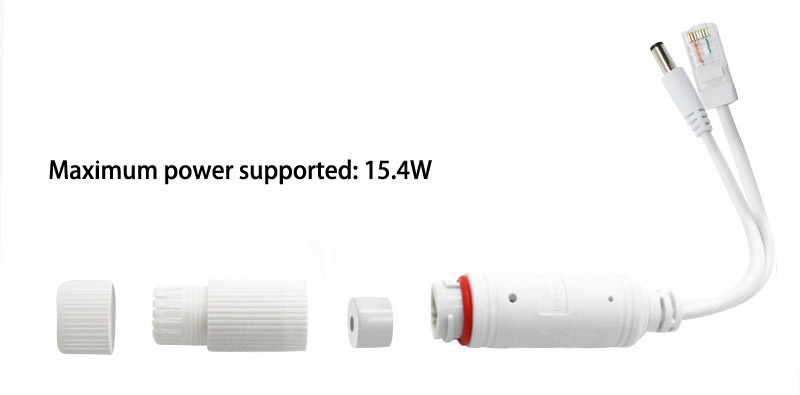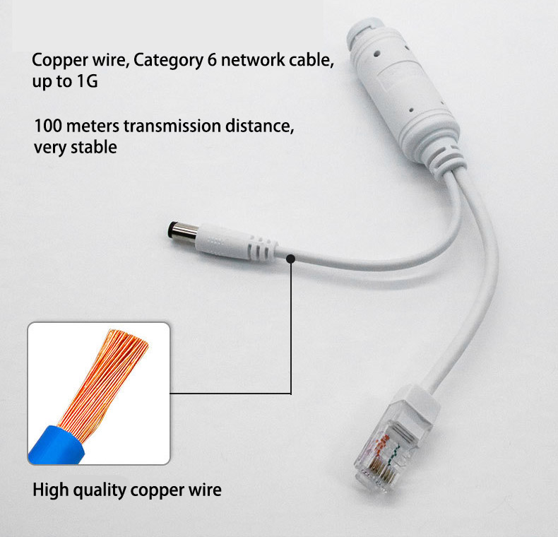 1. 48V standaard POE waterdichte splitter, gebruikt met een POE switch, gemakkelijk handvat de signaaloverdracht en voeding van gewone IP camera’s.