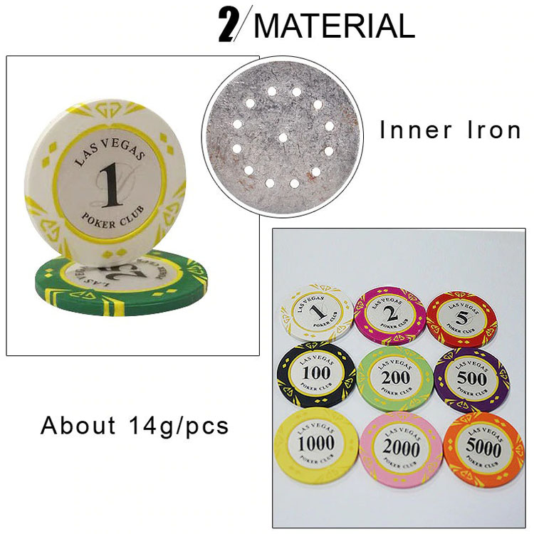 Professionele Upscale Klei Las Vegas Texas Poker Chips 14G Set Casino Munten 40Mm Coin Poker Chips Entertainment Dollar Munten Card Game 5 Stks