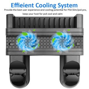 PS4 Verticale Stand met Koelventilator wordt geleverd met 2 ingebouwde fans. Biedt een gestage stroom van koele lucht en effectief onderhoudt uw PS4 console tegen oververhitting en verlenging van de levensduur.