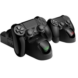 Onze universele PS4 console dual charging station met twee oplader poorten tegelijk laadt uw PS4 controller, bespaart u tijd! De verticale beugel fan koeler kunt uw PS4/PS4 pro/PS4 slanke om effectief worden gekoeld. Een HUB en een usb-poort zijn ontworpen met krachtige opladen uitgangen voor geweldige prestaties verbeteringen. Deze PS4 accessoire is uw beste keuze!
