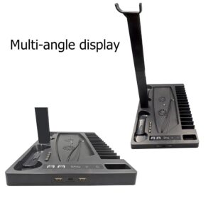 Ruimtebesparend ontwerp: meestal is de gameconsole te groot en nemen sommige accessoires te veel ruimte in beslag. Maar met deze verticale standaard kunnen je PS5-mainframe en handgreep op de standaard worden geplaatst, waardoor er veel ruimte wordt bespaard terwijl de ps5-ruimte wordt gekoeld.