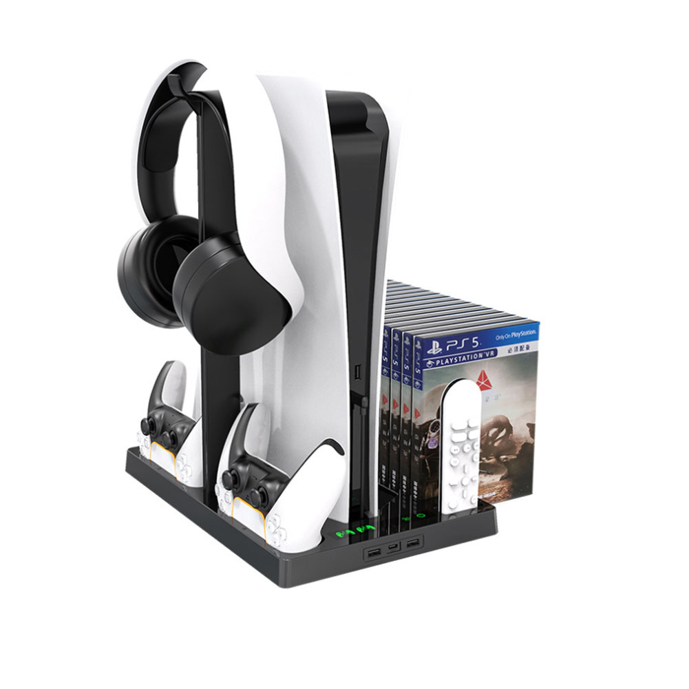 Alles in één: console verticale lampstatief + laadstation + USB-hubkoeler + 15 game-opslag