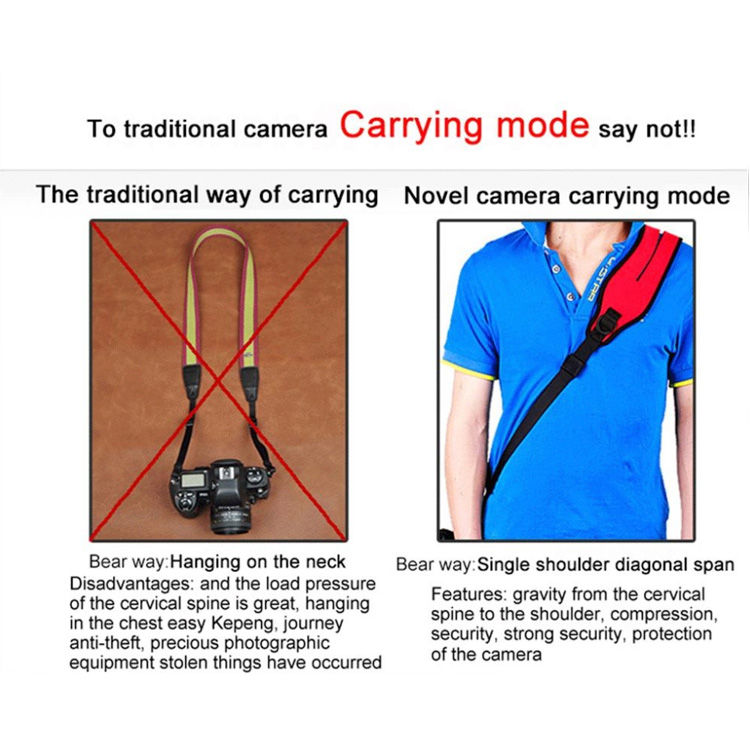 Deze camerariem is gemaakt van ballistisch nylon voor extreme duurzaamheid, is ontworpen voor buitenopnamen en kan uw camera beschermen als u onderweg bent en als u buiten op pad gaat. Het past op de meeste spiegelreflexcamera’s die er op de markt zijn. Er is een snelkoppeling voor een statief met 1/4 schroefdraad om de camera aan te sluiten op elk apparaat met een 1/4 schroef. Comfortabel in gebruik. De riem past een ergonomisch ontwerp toe en het gewicht wordt gelijkmatig verdeeld via het schouderstuk.