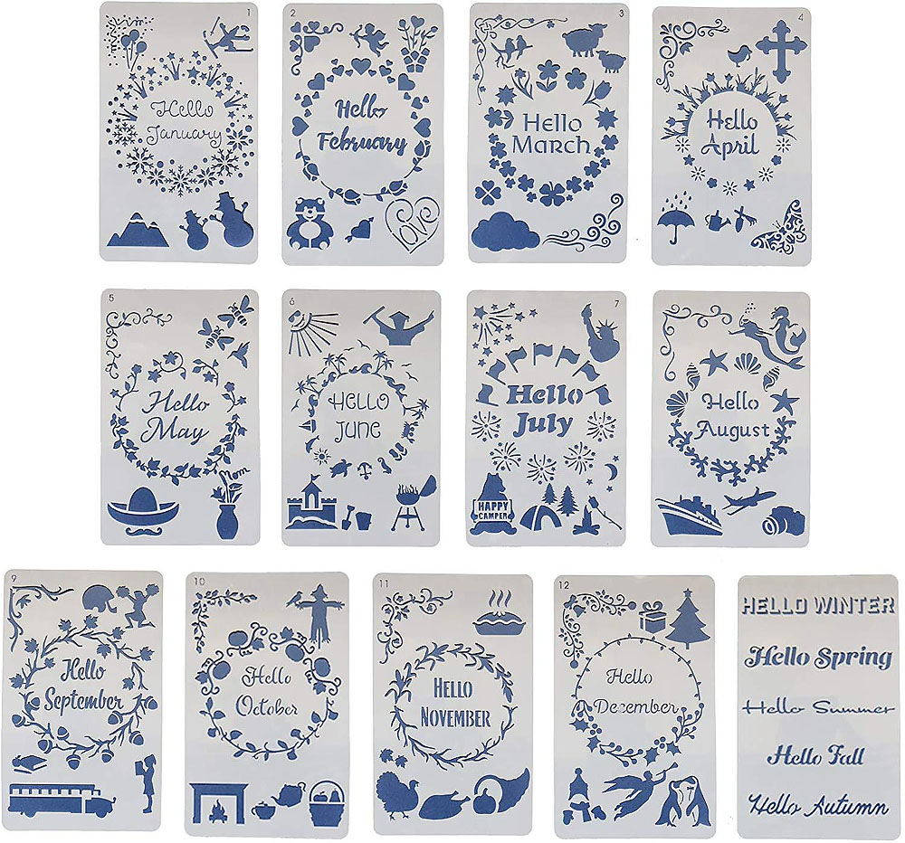 12 in1 Scrapbooking Tool Kaart DIY Album Masking Spray Geschilderd Template Tekening Stencils Laser Cut Template Schilderen Scrapbooking Maand Embossing Stempelen Card