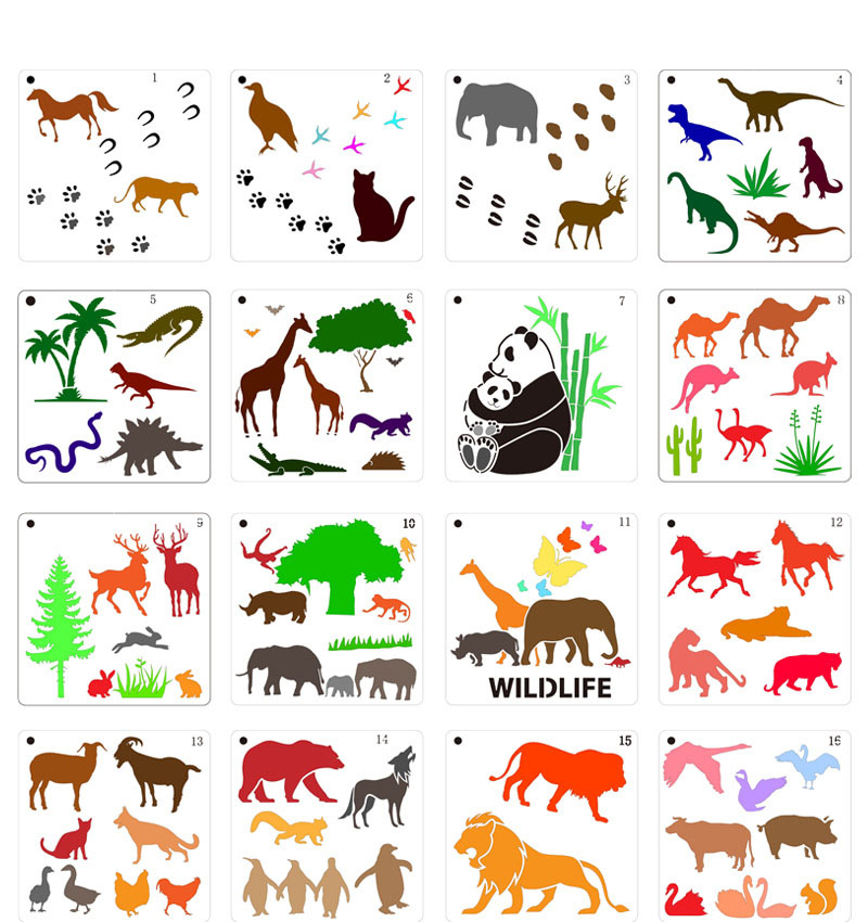 16 in 1 Kaart DIY Album Masking Spray Geschilderd Template Tekening Stencils Schilderen Scrapbooking Card Dieren