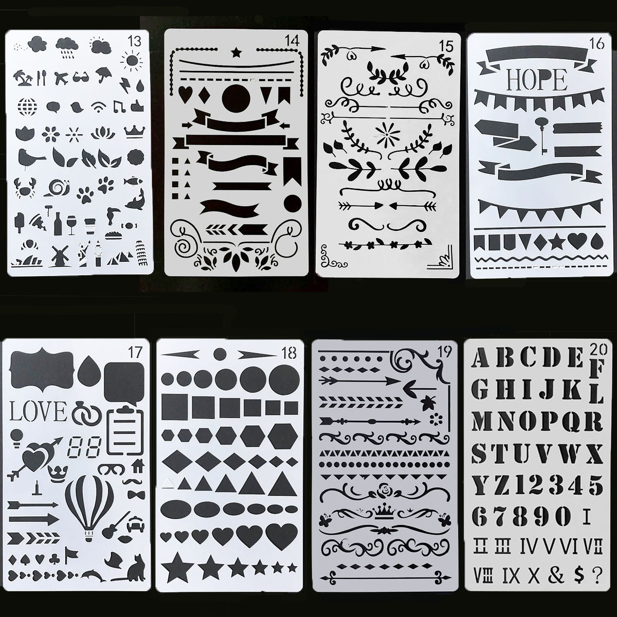 8 in1 Scrapbooking Tool Kaart DIY Album Masking Spray Geschilderd Template Tekening Stencils Laser Cut Template Schilderen Scrapbooking Embossing Stempelen Card. Nummer 13 tot 20.