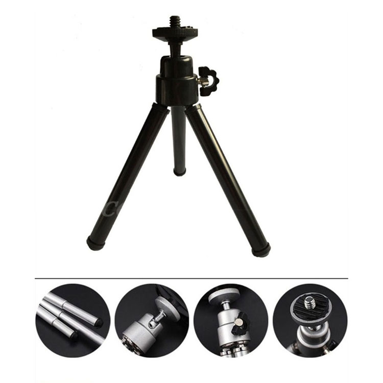 statief been is gemaakt van aluminium, statiefkop is plastic.met 1/4 schroef mount, kunt u gemakkelijk schroef om de digitale camera of dv. gemakkelijk te dragen, kan de hoogte van het statief, van 14 cm tot 18 cm.