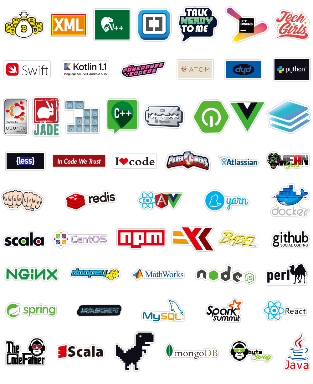 Gave sticker set voor liefhebbers van IT en computers. Maar liefst 108 stickers met diverse logo’s en teksten.