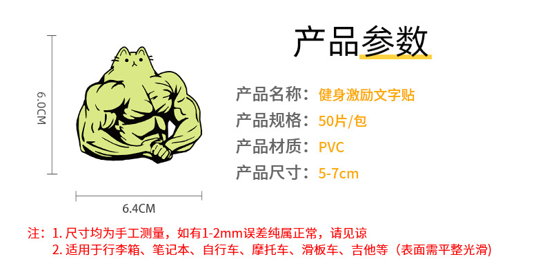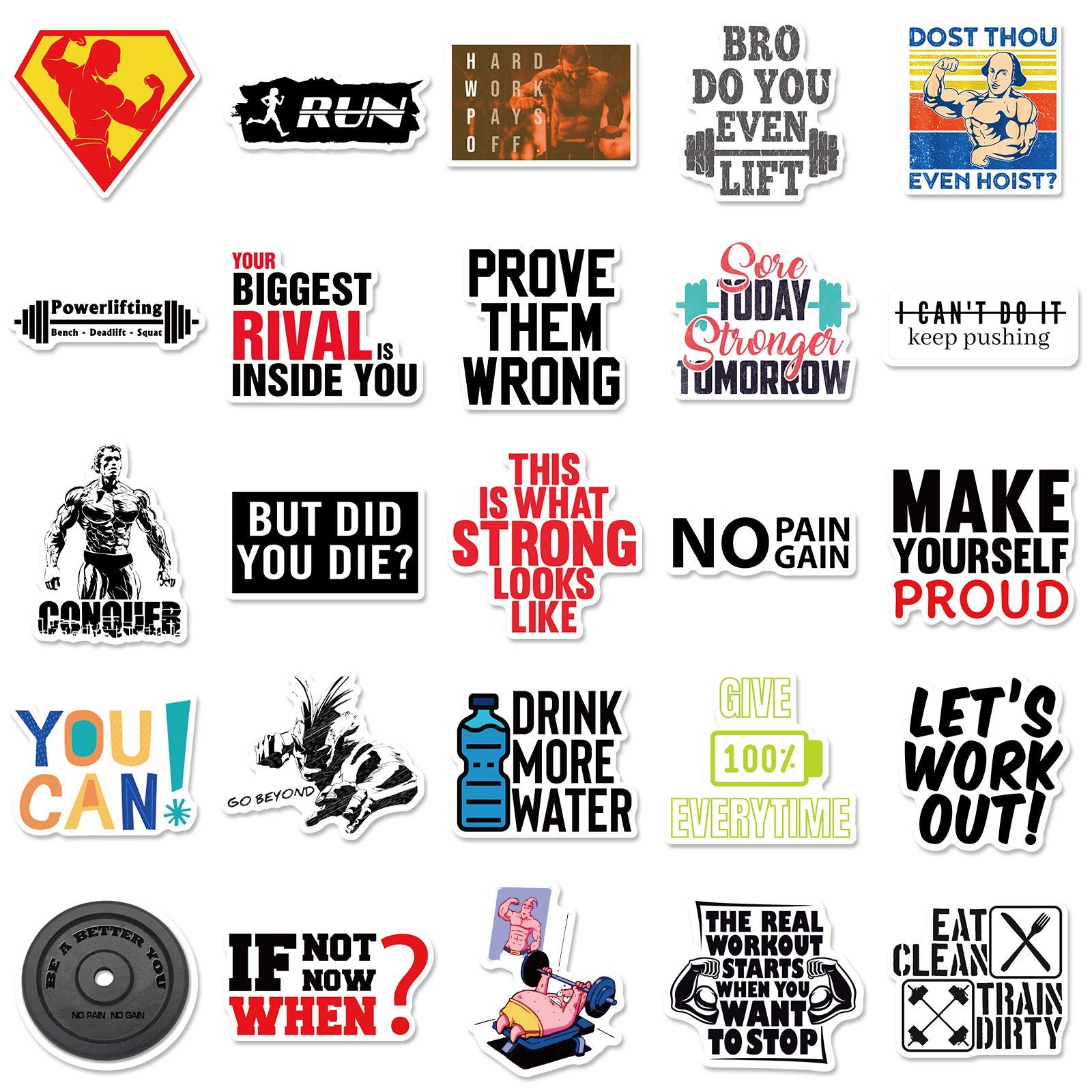 50 stuk fitnessruimte gym sportschool Cartoon stickers voor kinderen en volwassenen Beloningsstickers Journal Laptop Telefoon Stickers