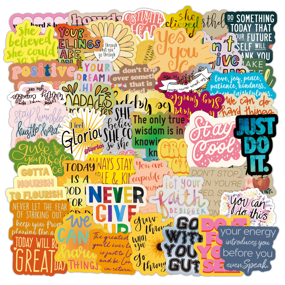 50 stuk inspirerende tekst Cartoon stickers voor kinderen en volwassenen Beloningsstickers Journal Laptop Telefoon Stickers