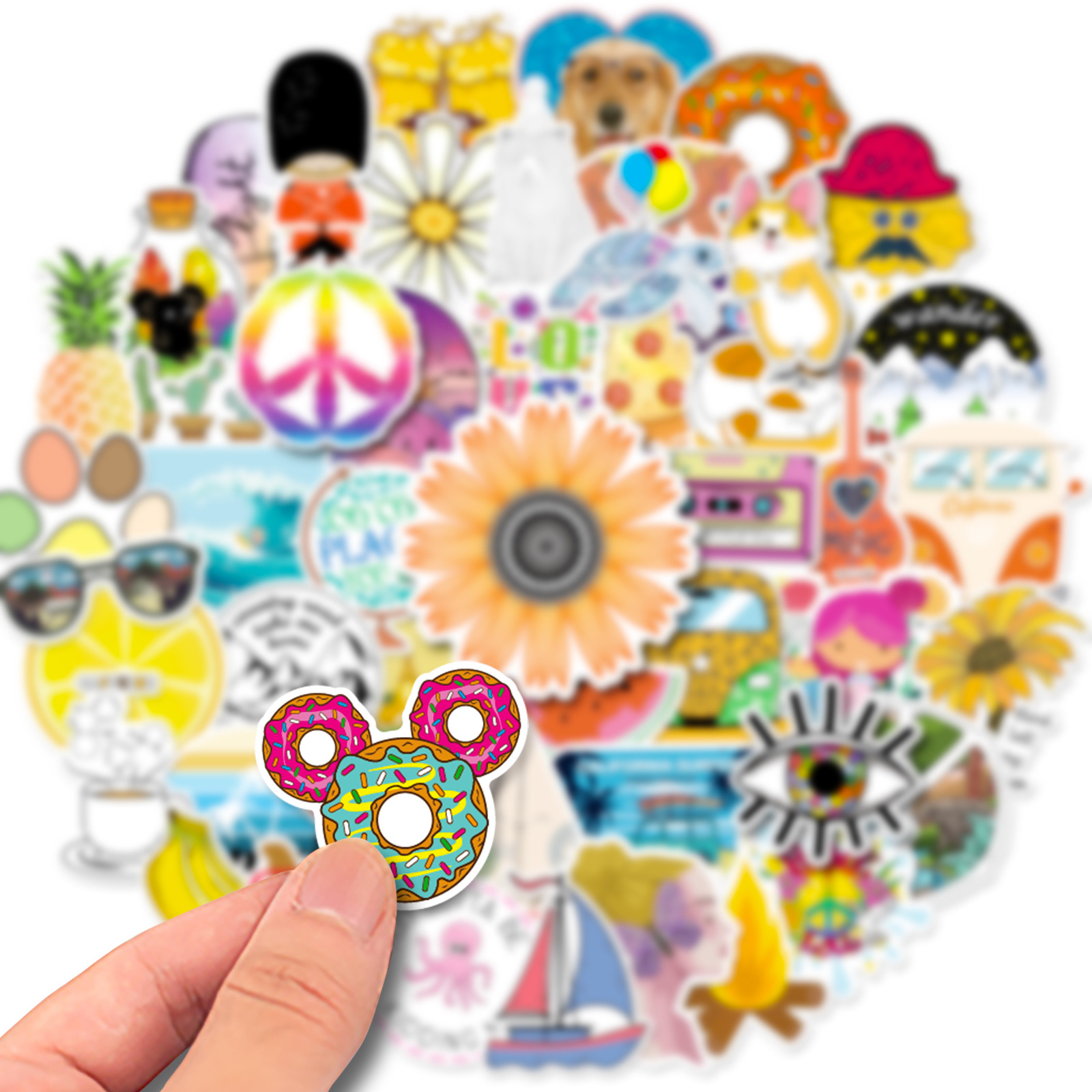 Alle stickers op de foto’s zitten in de set. Geen herhaling, elke sticker is uniek.